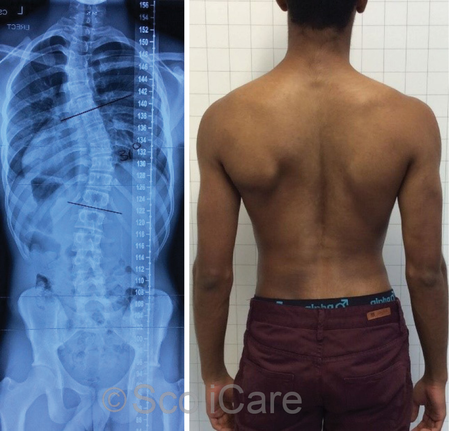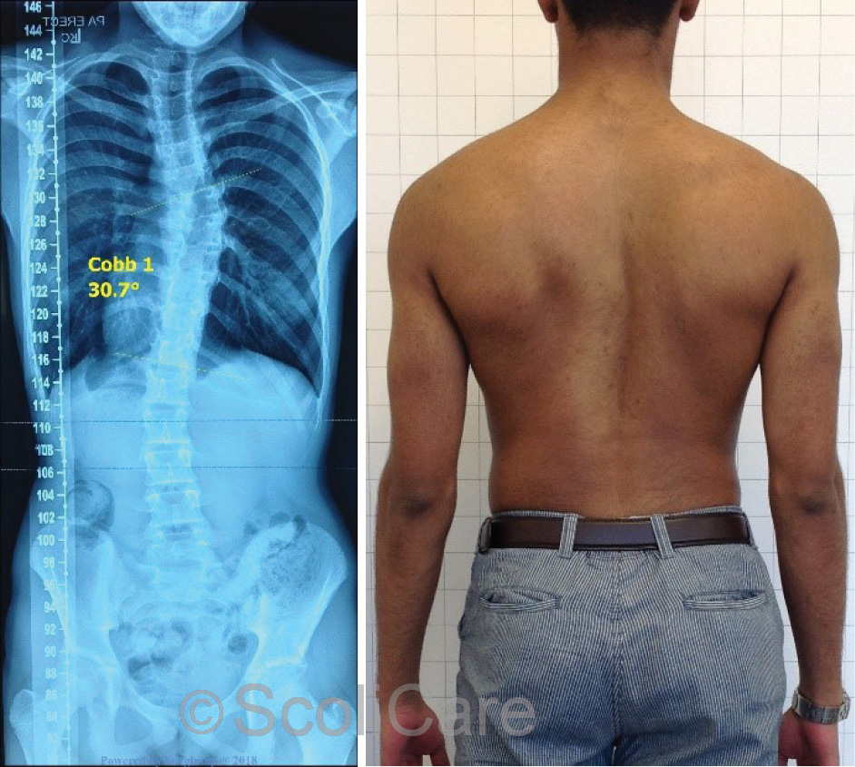 The patient was not experiencing any pain from his scoliosis but was aware of the asymmetrical shape of his torso.