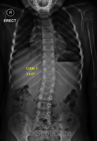 The child wore the brace for 24 months which resulted in a reduction of the curve from 40° down to 14°. The child is still under care and will continue with a soft-brace to encourage the correction of the remaining deformity as the child grows.