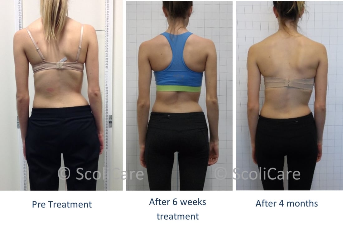 After 4 weeks of treatment, the patient’s back pain had decreased to minimal if any, and her body had adapted to the ScoliCorrection and ScoliRoll, allowing her to improve the range of movement of her spine.