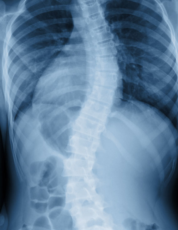 Scoliosis is a progressive, sideways curvature and twisting of the spine. When viewed from the front or back, the spine should be straight and when viewed from the side the spine should have three natural curves.